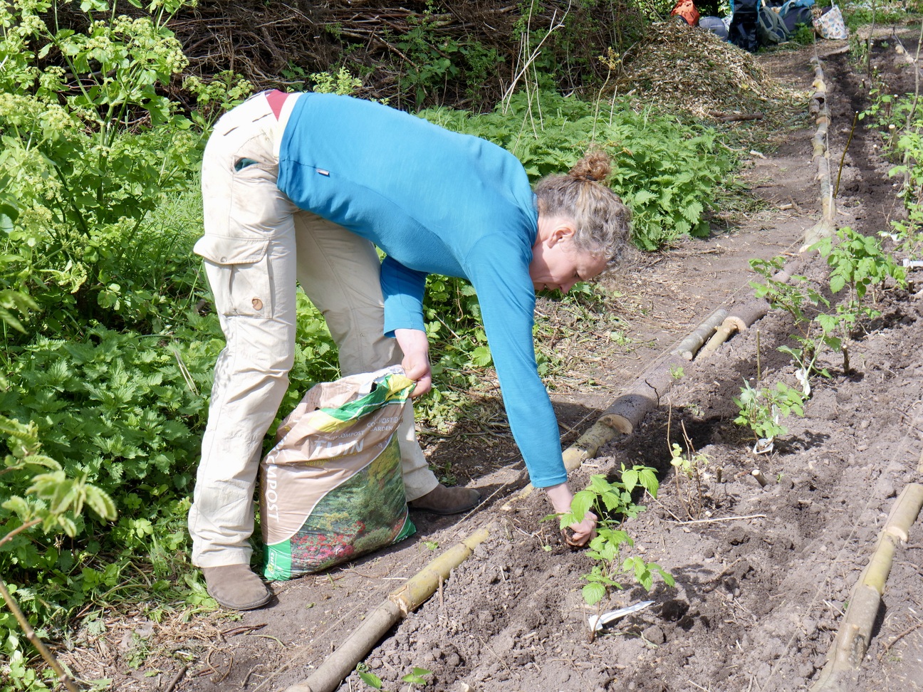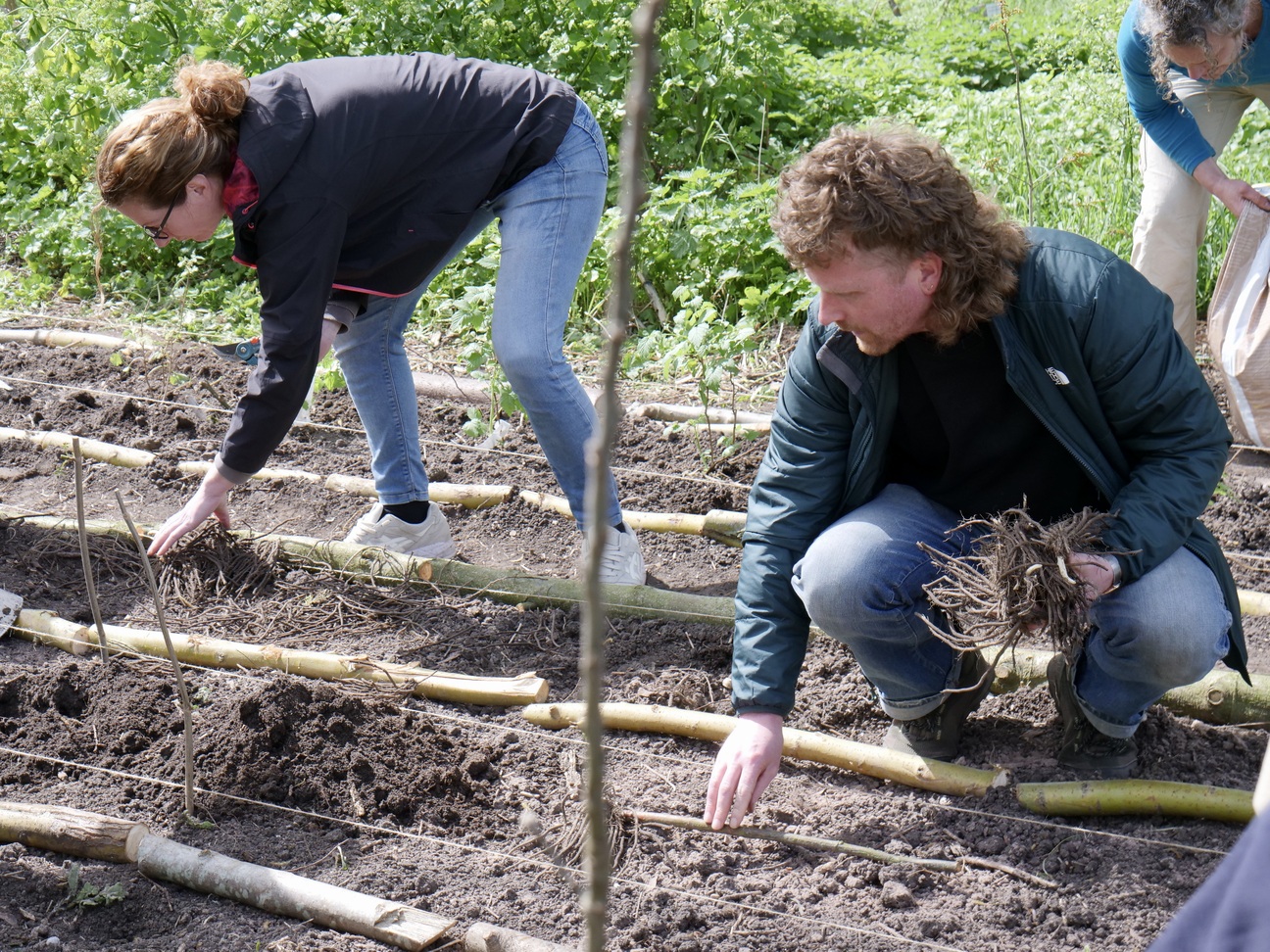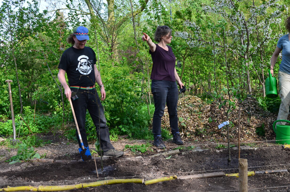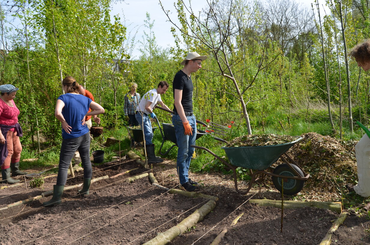 De plek werd vol gezaaid en geplant met soorten die elkaar (in hoge dichtheid) in tijd en ruimte gaan opvolgen. Vol? Nou zo vol: Kastanjes, eiken, populieren, wilgen, essen, vlieren, appels, linden, aalbessen, frambozen, asperges, aardperen, rabarber, smeerwortel, aardbeien, uien, aardappelen, doperwten, tuinbonen, japanse haver, phacelia en gele mosterd.